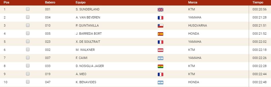 El francés Van Beveren finalizó en el segundo puesto, a 32 segundos, mientras que el podio fue completado por el chileno Pablo Quintanilla, a 55 segundos del ganador.