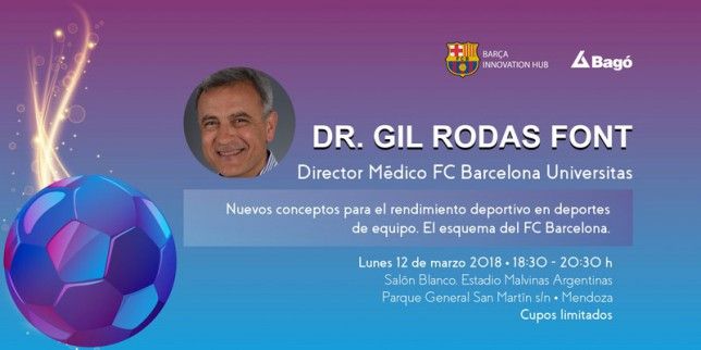 El Directo médico del FC Barcelona, Gil Rodas Font, se encuentra en Mendoza en el marco de una serie de charlas y brindar un interesante simposio sobre "nuevos conceptos para el rendimiento deportivo en deportes de equipo".