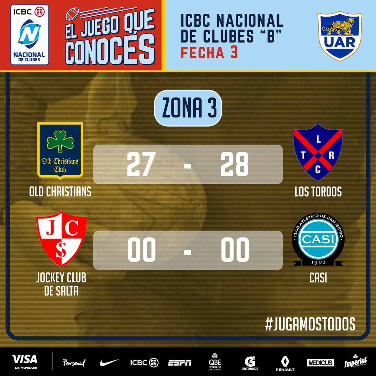 Los Tordos por el Nacional B venció en Uruguay a Old Christians por 28 a 27 y alcanzó en el primer puesto al CASI- jugará mañana en Salta ante Jockey-.