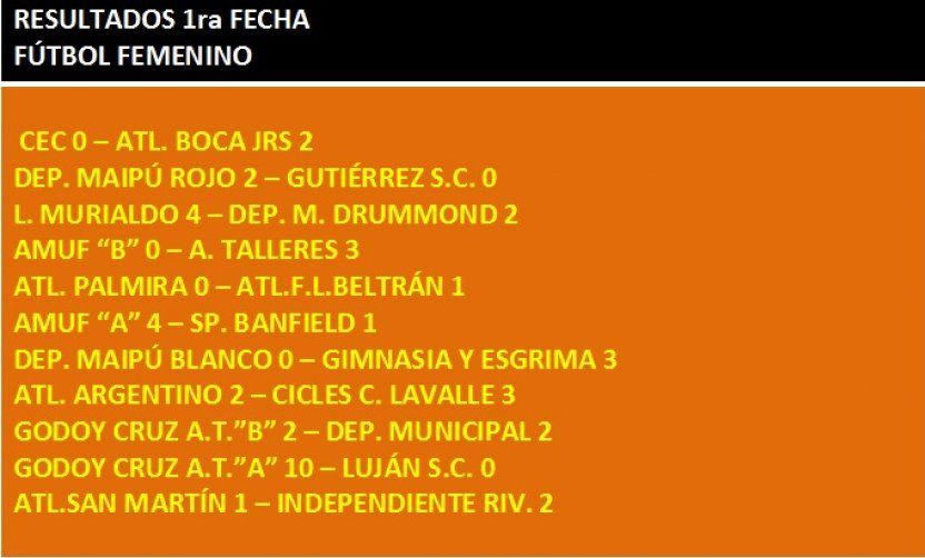 Resultados de la Primera Fecha Foto publicada en el sitio de la Liga Mendocina de Fútbol.