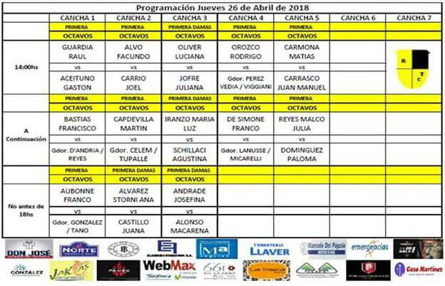 Por la parte inferior del cuadro, Gastón Aceituno derrotó a Rodolfo Panella por un doble 6/1; Eduardo Celem superó a Agustín Tupalle por 7/5 y 6/3, Tomás Pérez Vedia a Bautista Viggiani por 6/0 y 6/1 y Gonzalo Tano a Elías González por 6/2 y 6/1.
