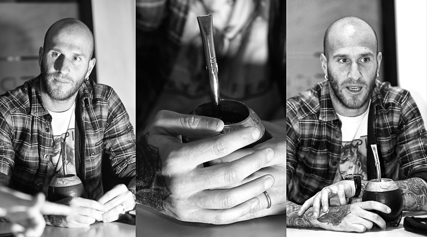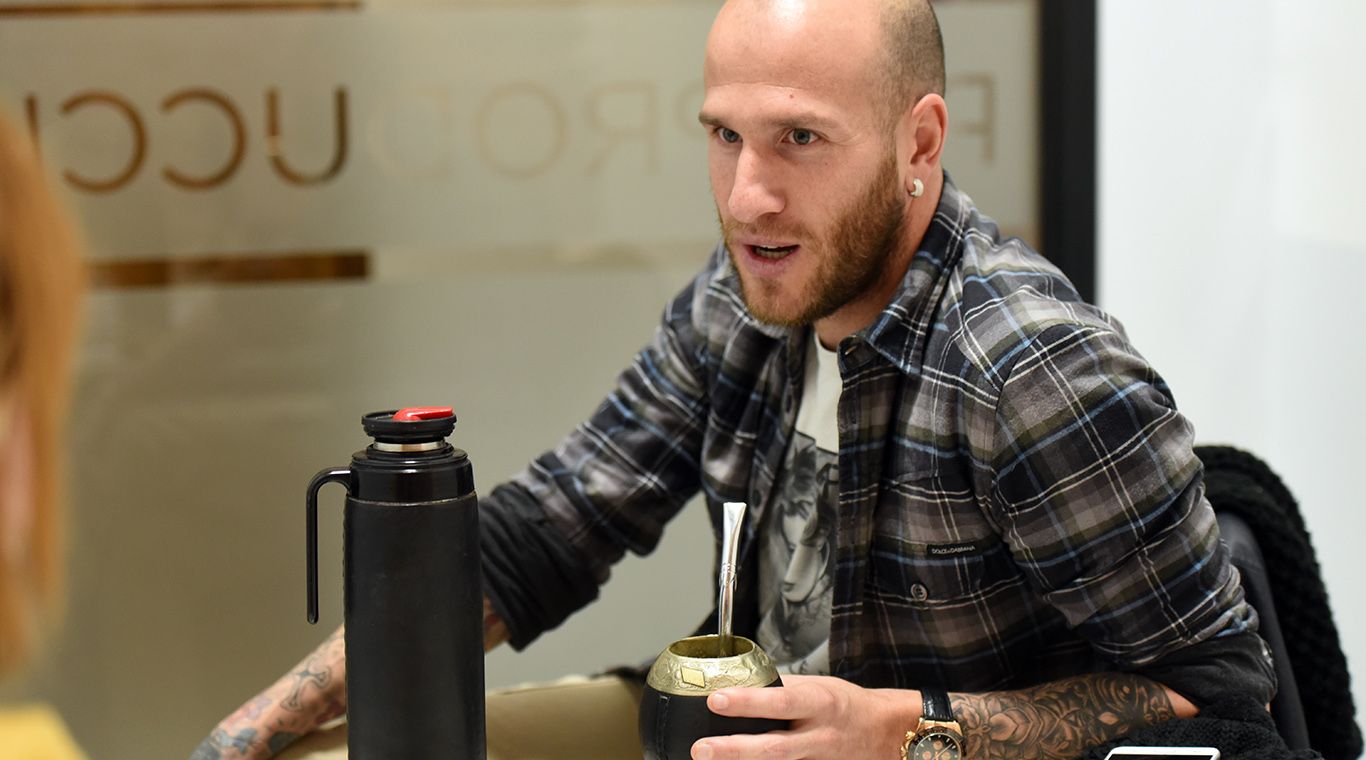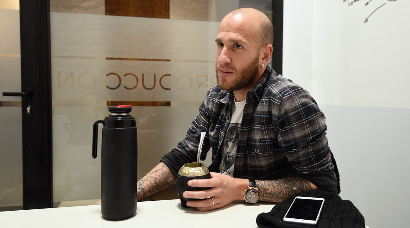 El mate, un compañero: "Este mate es un regalo de un ex compañero de Aldosivi. Para mí es una compañía. Vine caminando al diario con el mate, no vine solo (risas). En el vestuario sirve para romper el hielo y es una forma de generar unión entre nuevos compañeros", expresó al llegar al diario.