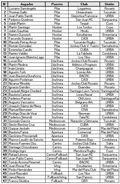 De estos 47 jugadores, quedarán 35 para jugar vs Los Teritos en Hindú, el sábado 28 de julio desde las 12hs. Ese partido se jugará en el marco de la Sudamérica Rugby Cup.