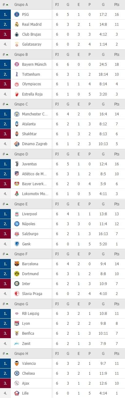 Juventus, por su parte, se impuso por 2 a 0 al Bayer Leverkusen, logró su quinta victoria consecutiva en el certamen y finalizó primero en el Grupo D, con seis puntos de ventaja sobre el Atlético de Madrid, el otro clasificado.