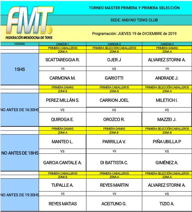 Con un intenso calor se jugó en el Andino Tenis Club una nueva ronda de partidos del Master de Primera Categoría y Primera Selección, tanto de Damas como de Caballeros.