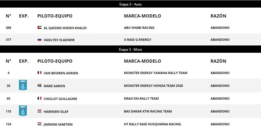 Caídas, golpes e incendios: los abandonos de la etapa 3