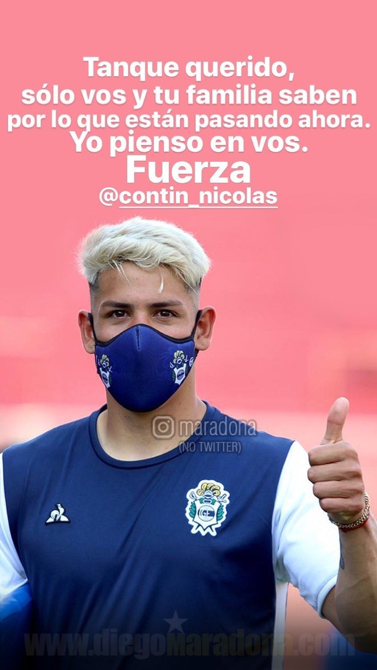 Tras la aclaración, en el mismo perfil, Maradona saludó a Contín a quien le deseó pronta recuperación con un sentido mensaje: "Tanque querido, sólo vos y tu familia saben por lo que están pasando. Yo pienso en vos. Fuerza".