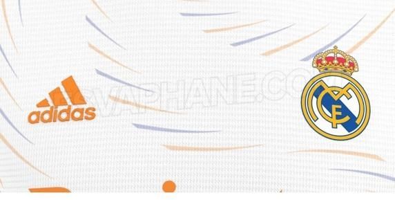 El Real Madrid recuperaría el azul marino (Hi-Res Blue) para los estribos, además de ir en esos motivos para simular el agua de la fuente. La novedad está en el color naranja (Lucky Orange), que coparía el cuello, el logo de la marca de ropa y el eslogan de Fly Emirates.