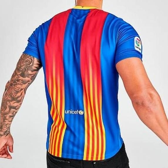 La nueva camiseta conservará el diseño principal de la primera equipación de color azulgrana pero las franjas grana de la parte superior de la misma se van degradando para combinarse con el amarillo y generar las cuatro barras de la ‘senyera’.