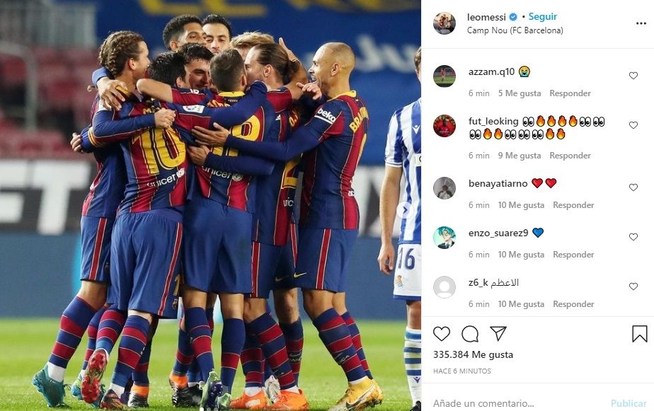 A Lionel Messi solamente le faltó el gol para adornar otra buena tarde en Barcelona. El astro argentino fue clave para la victoria ante la Real Sociedad, resultado que sirve como incentivo pensando en lo que viene, y utilizó las redes sociales para dejar un sencillo pero categórico mensaje.