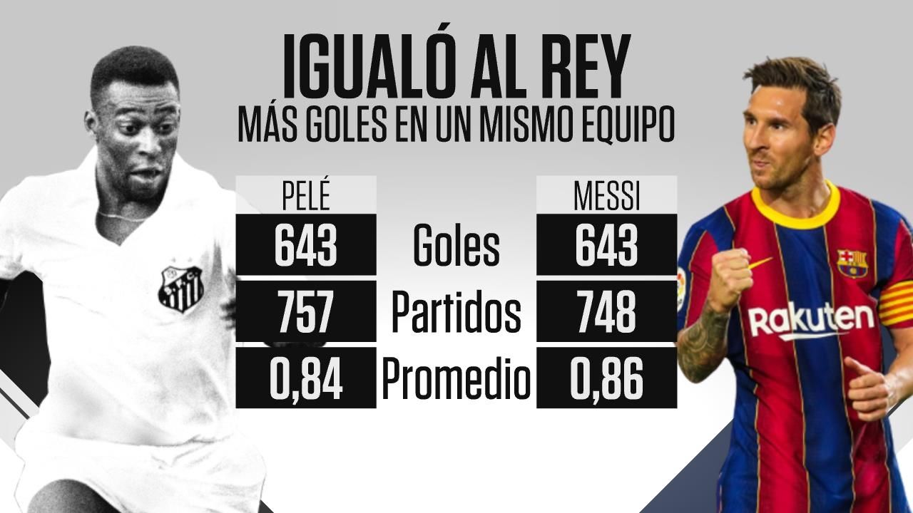 Messi, que aún está en actividad por lo que además superará ampliamente el número, alcanzó la cifra en menos partidos, 748 sobre 757 que jugó el brasileño en el Santos, por lo que tiene un mejor promedio de gol: 0,86 sobre 0,84.
