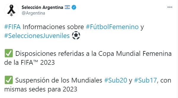 "La FIFA desea mostrar su agradecimiento a las federaciones anfitrionas, así como a las autoridades de Indonesia y Perú por su compromiso con los torneos y por los preparativos llevados a cabo hasta la fecha. Seguiremos colaborando estrechamente con los países anfitriones para que los torneos sean todo un éxito", concluyó el comunicado.
