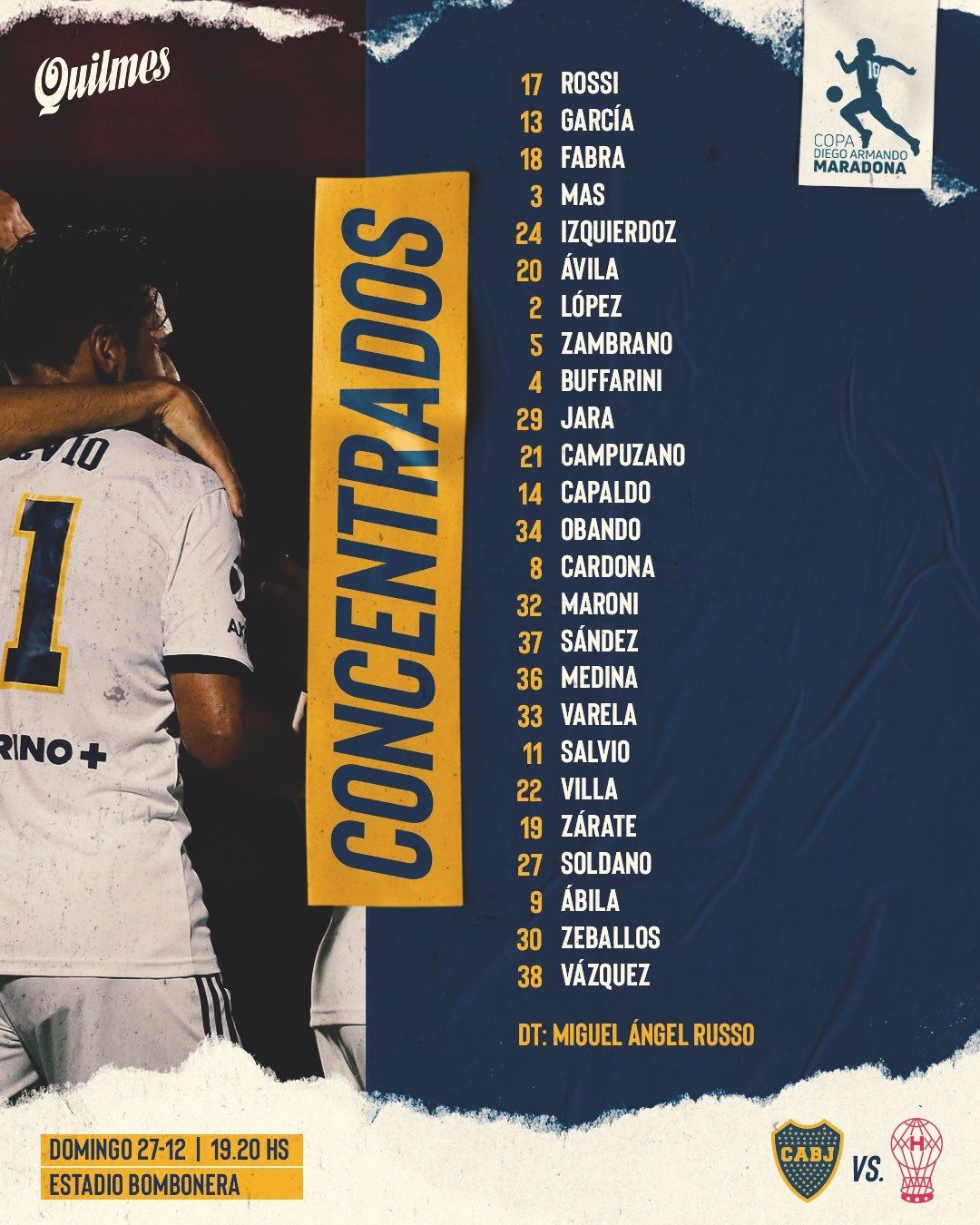 Ante esto, Miguel Ángel Russo decidió no concentrar a tres importantes futbolistas: Carlos Tevez, Esteban Andrada y Diego González, quien padece una molestia muscular y es duda para el clásico con River. Los otros casos no tienen que ver con lo físico sino tan solo con darle descanso a ambos.