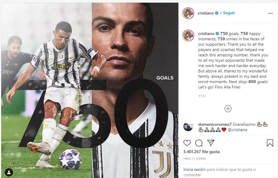 Anoche, el ex Real Madrid se expresó al respecto en su cuenta oficial de Instagram con un particular mensaje. "750 goles, 750 momentos felices, 750 sonrisas en las caras de nuestros hinchas. Gracias a todos los jugadores y entrenadores que me ayudaron a alcanzar este número asombroso", comenzó diciendo.