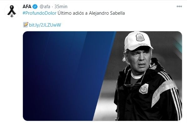 "Por razones vinculadas a la pandemia que todavía transitamos, sólo podrán concurrir familiares, amigos y personalidades del deporte cercanas al querido Alejandro". "Los restos de Alejandro Sabella serán inhumados, el día jueves, en el Cementerio Campanario" de La Plata.