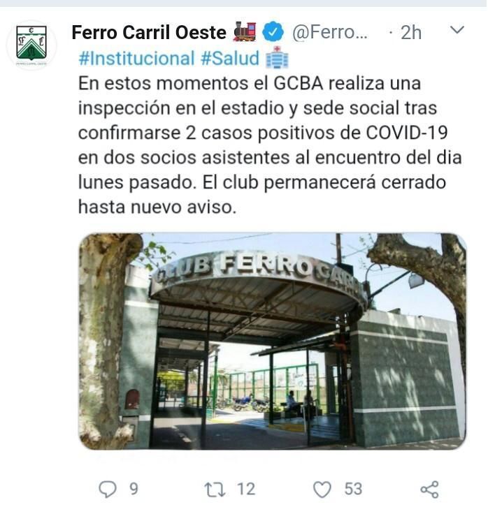 "Ferro informa que no existe ningún caso de Coronavirus (Covid-19) en nuestro Club y que el tweet trucho que inició la difusión falsa tuvo una clara intención de perjudicar a la Institución" subraya el comunicado de la entidad de Caballito, al tiempo que informa que las instalaciones de la institución permanecen abiertas.