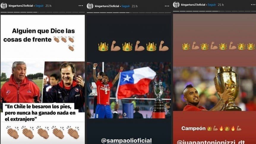 En una historia de Instagram, el Rey Arturo colocó aplausos para los dichos de Sulantay sobre el Loco: "En Chile le besaron los pies, pero nunca ha ganado nada en el extranjero". Además, el jugador del Barcelona señaló: "Alguien que dice las cosas de frente".