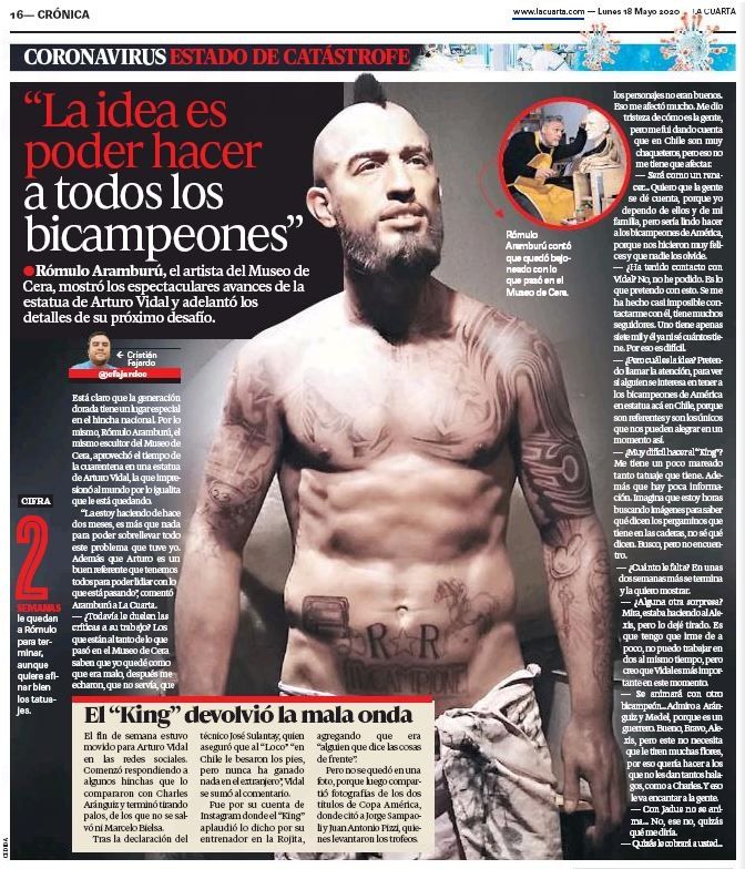"Estaría muy feliz si Arturo la viera como quedó", comentó el escultor, en declaraciones efectuadas al programa "24 horas Deportes", que se emite por la TV chilena.