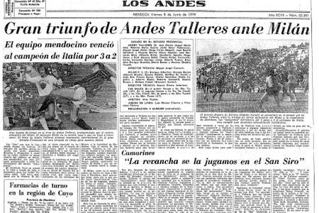 Durante su paso por nuestra provincia fue invitado a reforzar el equipo de Andes Talleres. La ocasión era un partido amistoso muy especial contra Milan, de Italia, que se encontraba en una gira sudamericana.