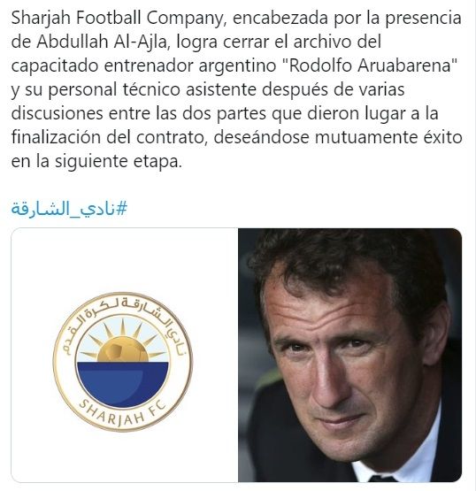 "Sharjah Fútbol Club firmó la finalización del acuerdo con el entrenador argentino Rodolfo Arruabarrena, en presencia del presidente de la institución, Abdullah Al Ejlad, que le deseó buena suerte", confirmó la entidad. Claro que con el vínculo ya firmado, embolsaría una suma millonaria sin siquiera haber dirigido.