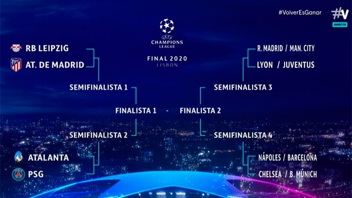 La UEFA sorteó los cuadros finales de la Champions League, competición que fue suspendida por el avance del coronavirus, en tanto que los cuatro partidos pendientes por octavos de la Champions se jugarán en los estadios previstos antes de la pandemia.