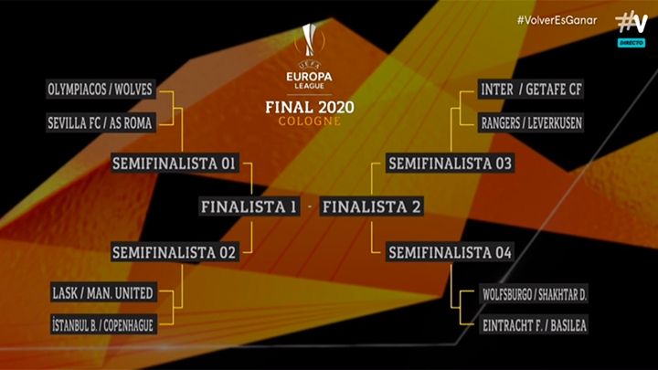 Luego de confirmar los emparejamientos de la Champions League, la UEFA hizo el sorteo del cuadro final de la Europa League, en la que están pendientes por octavos de final la serie completa entre Inter-Getafe y Sevilla-Roma, más los encuentros de vuelta de Basaksehir-Copenhague, Olympiacos-Wolverhampton, Rangers-Leverkusen, Wolfsburgo-Shakhtar Donetsk, Eintracht Frankfurt-Basilea y LASK-Manchester United.