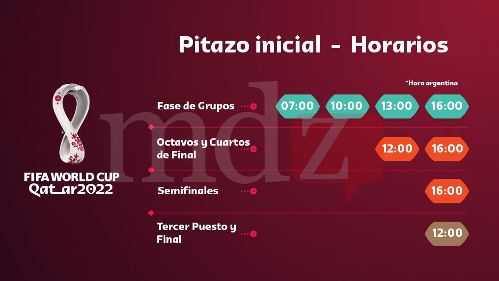 La FIFA, no obstante, no descarta que después del sorteo que se realizará en marzo o abril de 2022 los horarios puedan modificarse. "Una vez conocidos los emparejamientos, se valorará la posibilidad de asignar los mejores horarios dependiendo de las audiencias televisivas", detalló en el comunicado.
