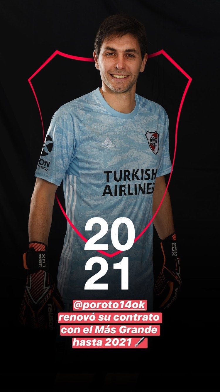 River, es una de sus historias en su cuenta de Instagram, anunció la renovación del contrato de Germán Lux, quién había finalizado su vínculo con el club el 30 de junio. Será por una temporada más, hasta junio de 2021, manteniendo la ilusión de retirarse en Núñez.