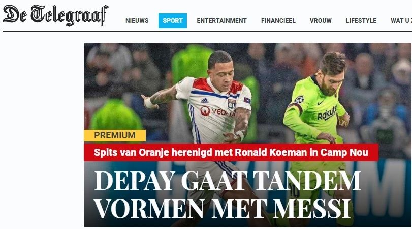 Memphis Depay se podría convertir en el siguiente fichaje del Fútbol Club Barcelona. Según apunta De Teleegraf, el club azulgrana ya tiene cerrado un acuerdo para incorporar al delantero del Olympique de Lyon y espera poder anunciarlo esta semana. "Memphis se va a jugar al lado de Messi", señala el citado periódico en su portada principal.