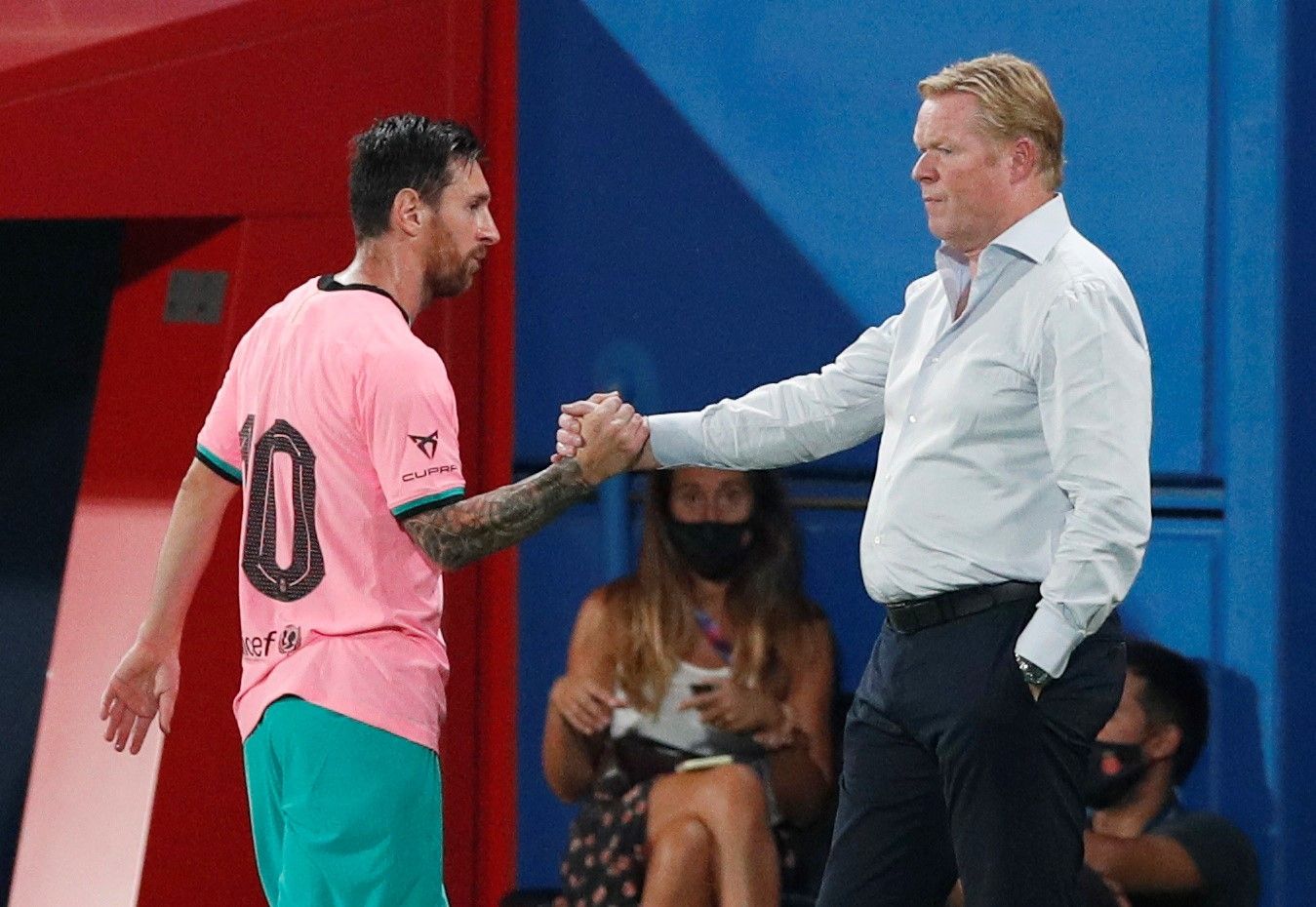 Cuando abandonó el campo de juego, la Pulga le estrechó la mano al director técnico neerlandés, que continuó mirando el partido durante el saludo. El jugador, por su parte, tampoco hizo contacto visual. ¿Una formalidad que no lo ameritaba? ¿El síntoma de que el vínculo se mantiene frío? ¿O una señal de que aceptaron dejar de lado las diferencias para trabajar juntos en pos de una temporada exitosa del elenco culé?