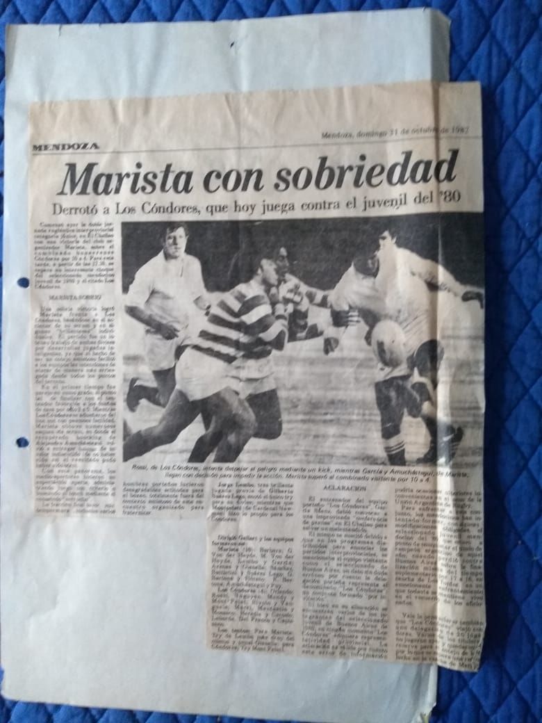 Corría finales de 1982 cuando el rugby mendocino recibió la visita de un conjunto formado por jugadores de clubes de Buenos Aires, Los Cóndores, equipo que se juntaba al estilo Barbarians y realizaban giras por el país y el extranjero. Con camiseta blanca o a rayas, Los Cóndores generalmente disputaban dos partidos ante seleccionados o clubes.