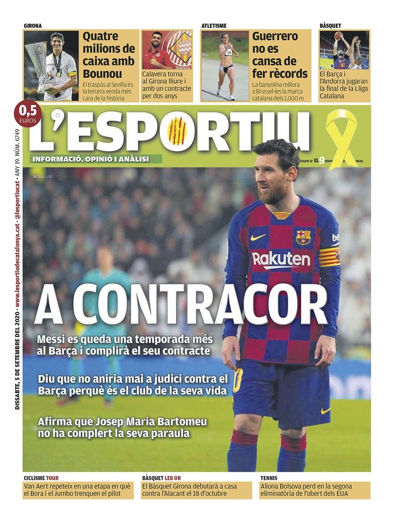 "A regañadientes", fue el título que eligió L'Esportiú, el principal diario deportivo editado en catalán, dejando claro que Leo quería irse y que no le quedó otra opción que quedarse.