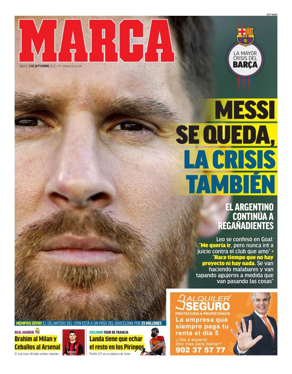 Finalmente As, el otro diario deportivo de la capital española, tituló "Me quedo", destacando la frase en la que el capitán de la Selección argentina avisó que "nunca iré a juicio contra el club de mi vida".
