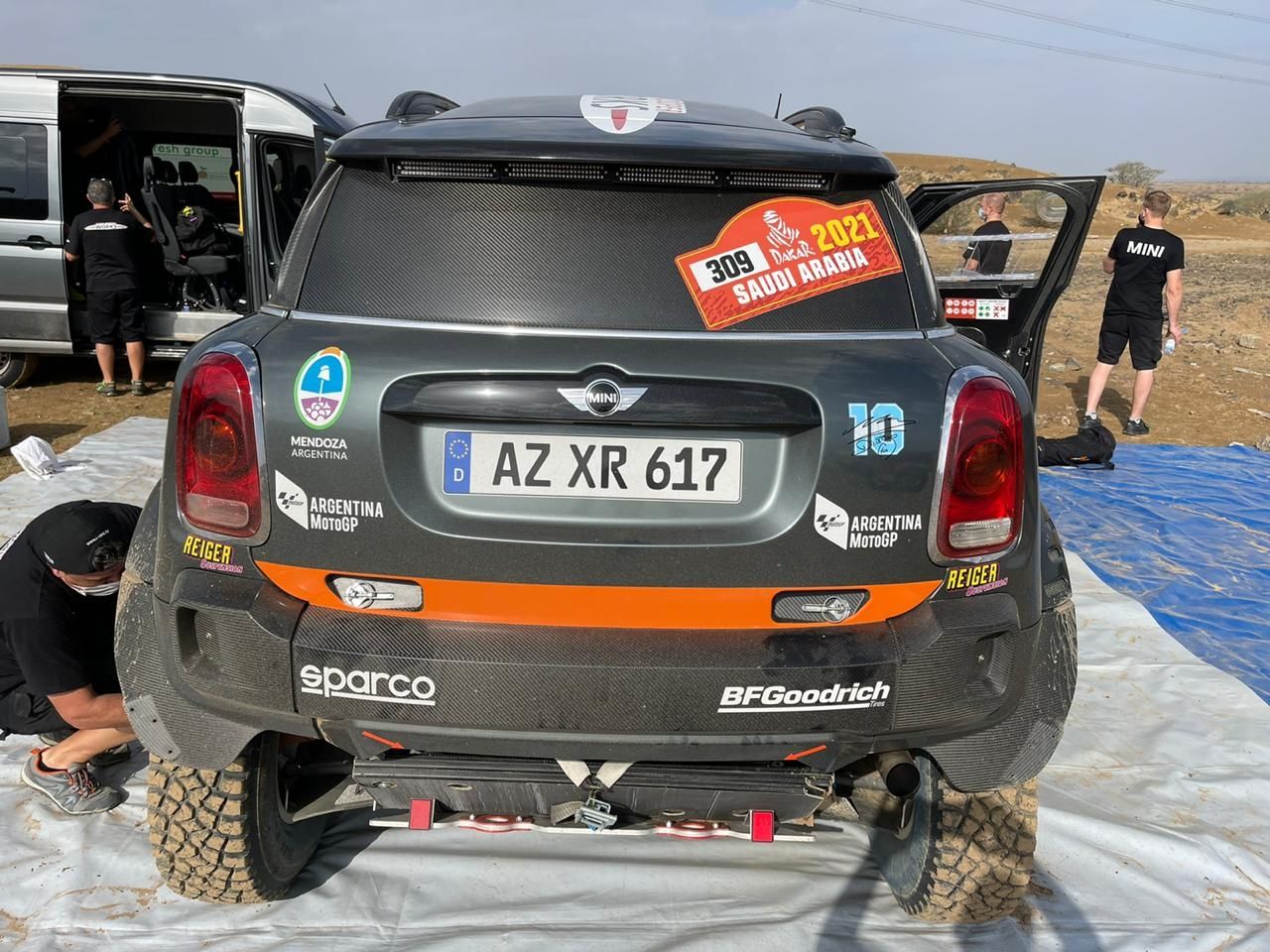 Ahora apareció un nuevo detalle: el piloto llevará en su coche gris con detalles en anaranjado y cuya estética es una réplica del Mini Countryman de calle una calcomanía con un número 10 y la firma de Diego Maradona.