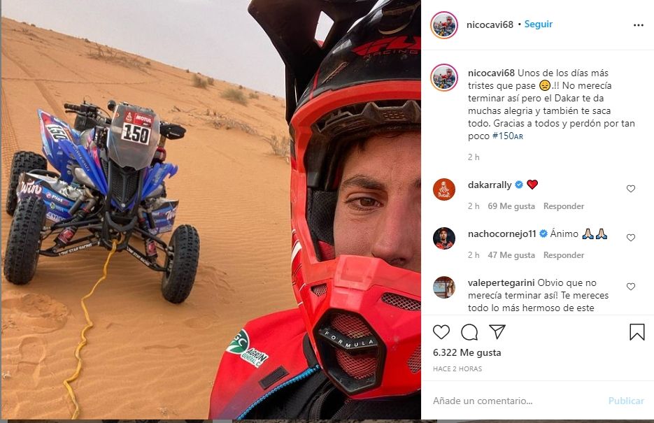 Ante esto, Cavigliasso se despidió del Dakar con un emotivo posteo en su cuenta personal de Instagram. Publicó una foto suya junto al cuatri acompañada de una dura despedida.