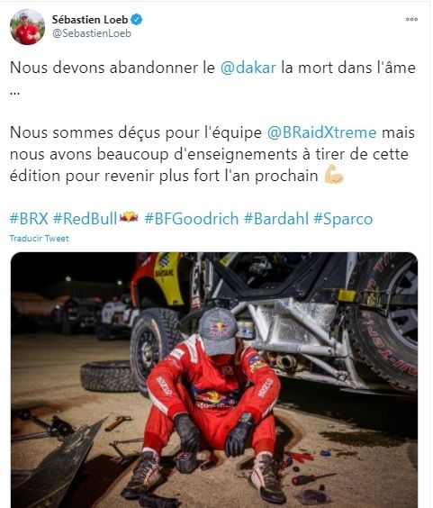 El campeón alsaciano participaba en su quinto Dakar, una prueba en la que no ha logrado aún la victoria: abandonó en 2016 y 2018 y acabó segundo en 2017 y 3º en 2019. En 2020, en la primera edición de la prueba en Arabia Saudita, Loeb no participó.