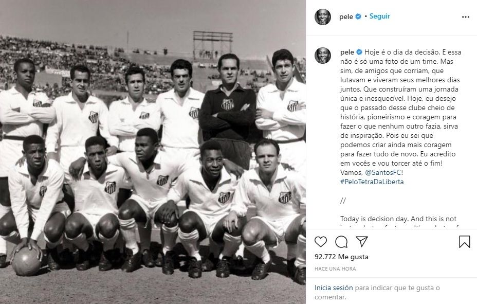 El astro brasileño Pelé ya sabe lo que es ganarle a Boca en la Copa Libertadores con la camiseta del Santos, y por eso hoy en la previa de la vuelta de semifinales decidió enviar un mensaje a los jugadores que recibirán al Xeneize.