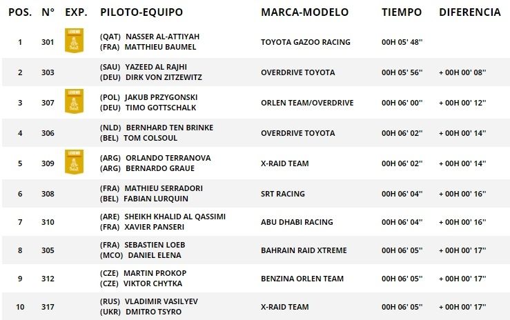 Finalmente el mendocino Orly Terranova tuvo un gran arranque al finalizar el prólogo a sólo 14 segundos del líder de la jornada, lo que le permitió finalizar quinto y ese será su orden de largada mañana, cuando se corra la Etapa 1 entre Jeddah y Bisha.