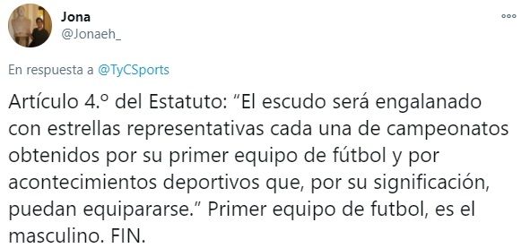 "Cada estrella que se agregue al escudo deberá ser aprobada por la Asamblea de Representantes", expresa el escrito. Como en el mismo no aclara que el equipo masculino tiene que ser el ganador de un trofeo, este movimiento cumple con el primer requisito y dejaron en claro postura al respecto.