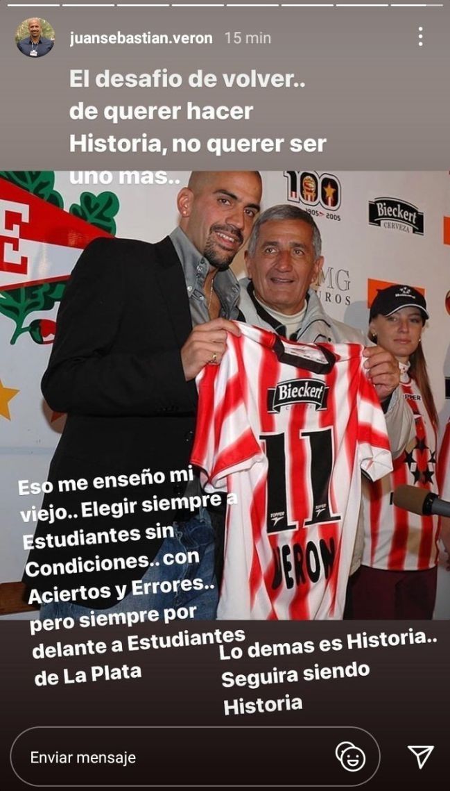 Juan Sebastián Verón, presidente e ídolo de Estudiantes de La Plata, publicó unas historias en Instagram en las últimas horas hablando de la importancia del Pincha que rápidamente fueron interpretadas como una indirecta para el defensor Marcos Rojo, quien está a punto de convertirse en refuerzo de Boca Juniors.