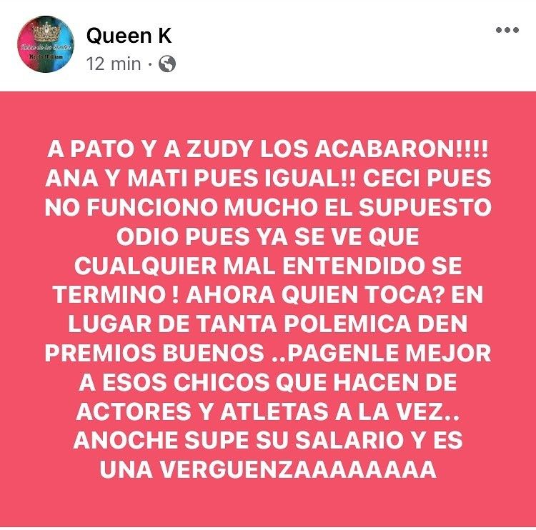 "Páguenle mejor a estos chicos que hacen de actores y atletas a la vez", pidió Keyla, y agregó que "anoche supe sus salarios y es una vergüenza", lo que significa un duro golpe para el programa ya que es una de las páginas más seguidas ya son miles los seguidores que están hablando del tema.