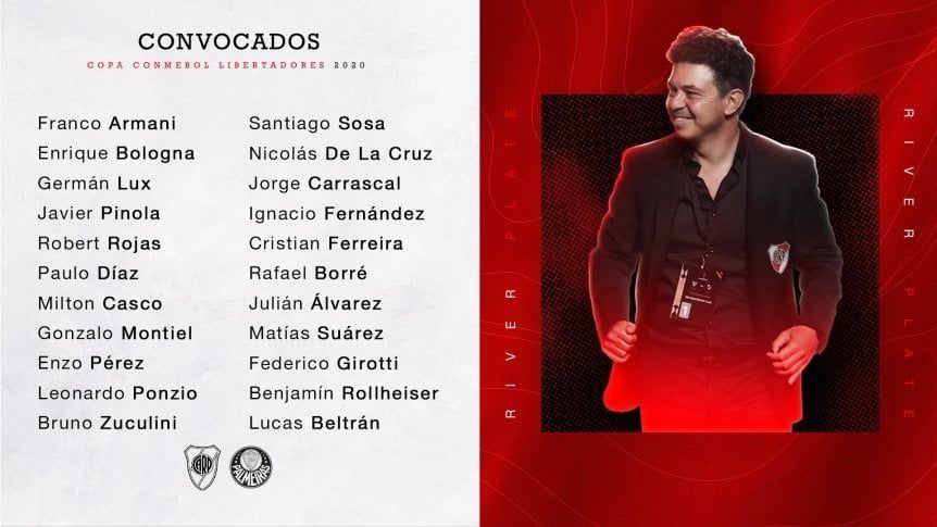 El Millonario se medirá el próximo martes desde las 21.30 con el Palmeiras de Brasil en el Libertadores de América. En este marco, Marcelo Gallardo ya presentó a los futbolistas convocados para el encuentro.
