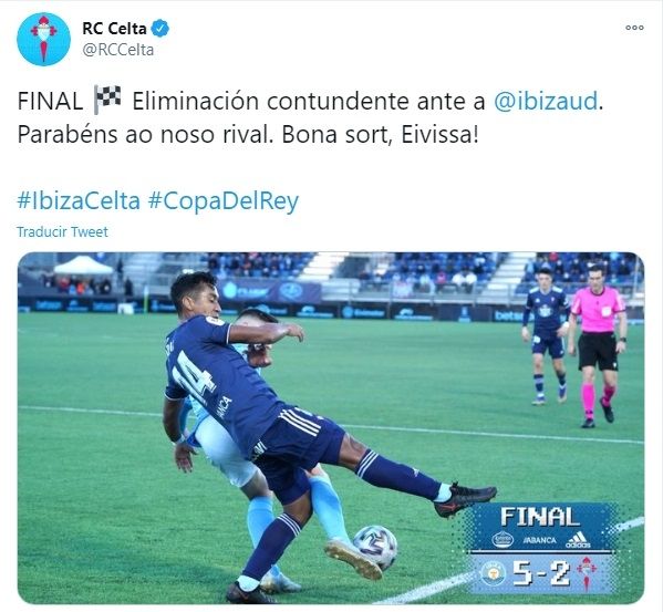Celta de Vigo quedó eliminado de la Copa del Rey ante el humilde Ibiza, de la tercera categoría del fútbol español, por 5 a 2 como visitante, en el marco de la segunda ronda. Coudet asumió el pasado 12 de noviembre y desde esa fecha el equipo levantó notablemente en el campeonato, pero la sorpresiva partida de la Copa del Rey será un golpe duro de digerir.