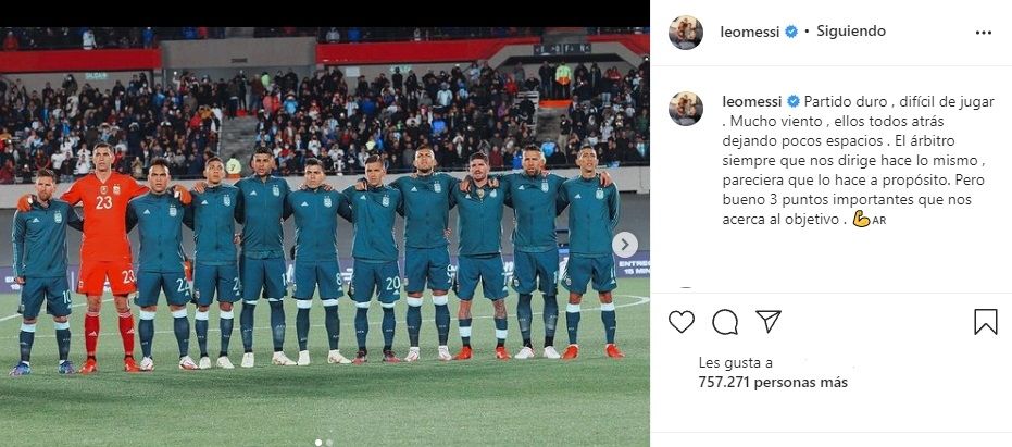 "Este árbitro siempre que nos dirige hace lo mismo. Pareciera que fuera a propósito", disparó Messi a través de sus redes sociales. "El partido fue duro, difícil de jugar. Había mucho viento y ellos estaban todos atrás, dejando pocos espacios", extendió su crítica Messi también al planteo del equipo dirigido por su compatriota, Ricardo Gareca.
