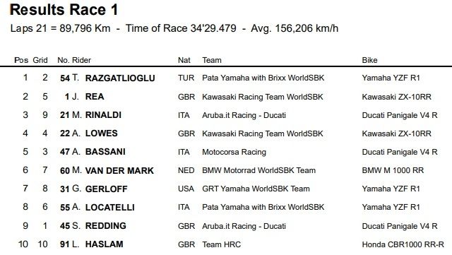 Top 10 - Carrera 1 - Superbike