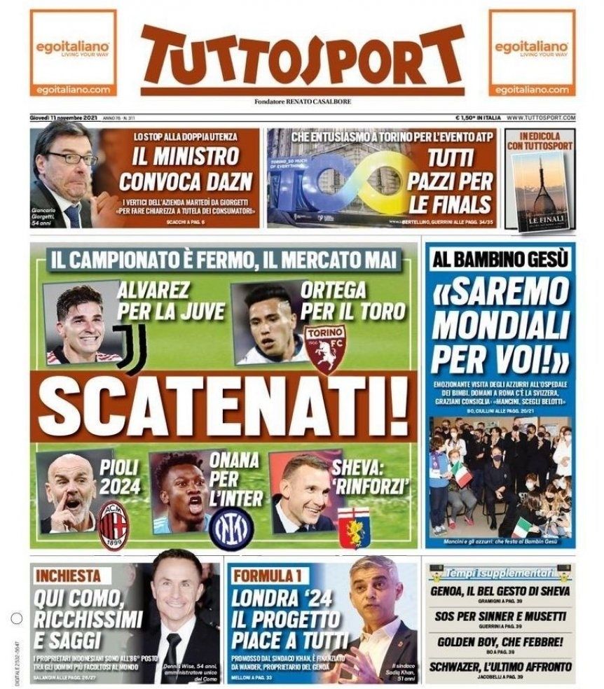 Julián Álvarez es portada de algunos diarios italianos que lo ubican en el radar de Juventus y Milan. El joven futbolista de River, por sus buenas actuaciones, despertó le interés de los gigantes europeos que por ahora hicieron sondeos. A ellos se podría sumar la Fiorentina, si consigue cerrar la venta del delantero serbio Dušan Vlahovic.