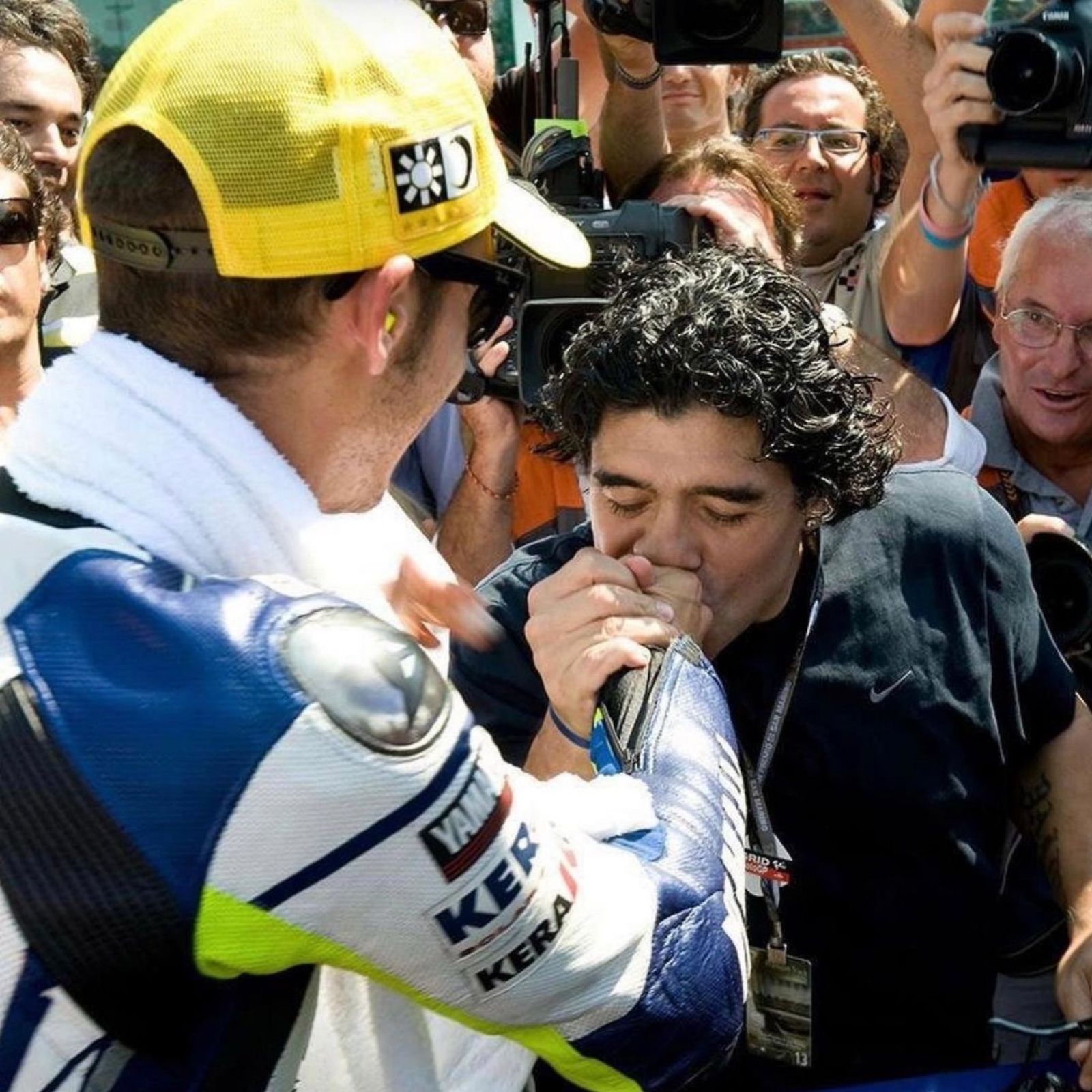 Ese día, Il Dottore se subió al podio con la camiseta de la Selección argentina, que en la espalda tenía estampado el número 10 y el nombre de Maradona, a quien conoció en el Gran Premio de San Marino 2008.