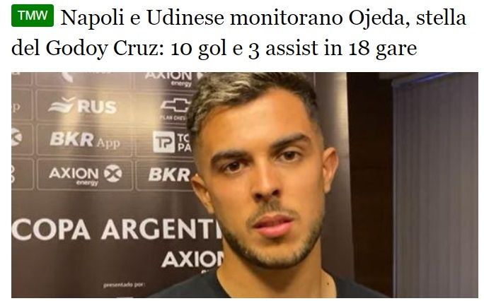 Martín Ojeda se ha transformado en pieza clave para Godoy Cruz. Esta temporada, el volante explotó y es considerado como una de las revelaciones de la Liga Profesional. Su presente, además, generó el interés de importantes clubes y en las últimas horas un importante medio italiano informó que dos clubes de la Serie A lo pretenden: Napoli y Udinese.