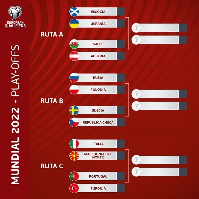 La selección de Italia se enfrentará a la de Macedonia del Norte y la de Portugal a la de Turquía en las semifinales del repechaje para el Mundial de Catar 2022, que se jugará el 24 de marzo, según el sorteo realizado este viernes por la FIFA para decidir los últimos tres equipos europeos.