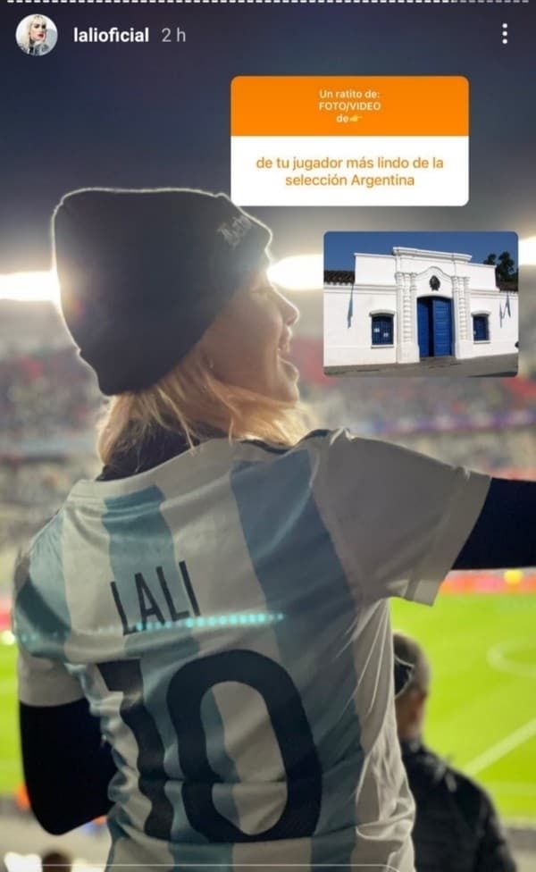 "Un ratito de foto/video de", propuso Lali a través de las historias y abrió la caja de comentarios. "Tu jugador más lindo de la Selección Argentina", le pidió una seguidora y ella respondió con la imagen de la casita de Tucumán.